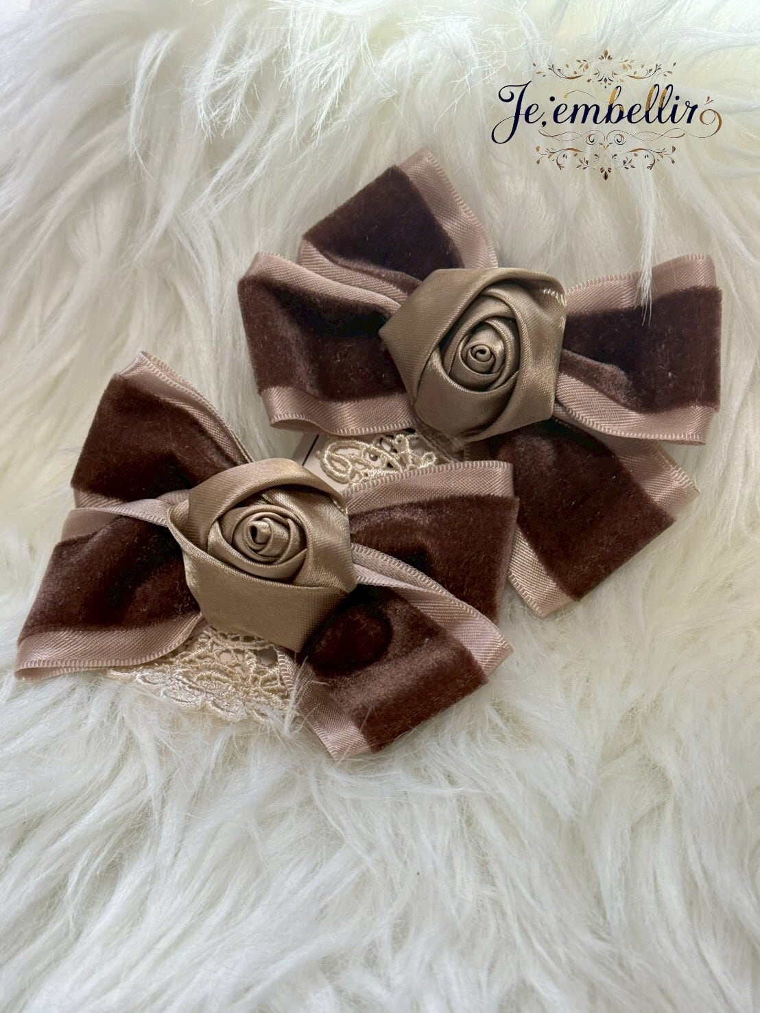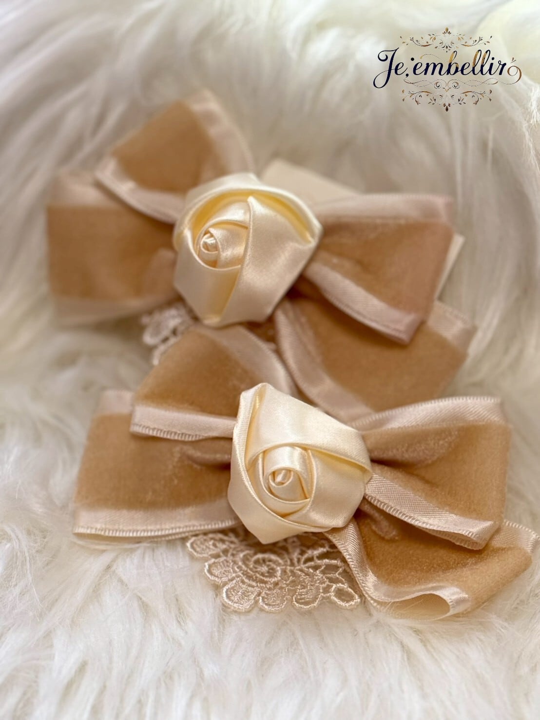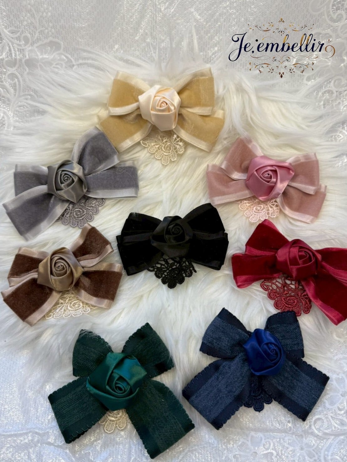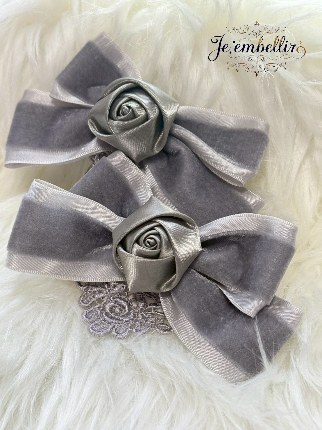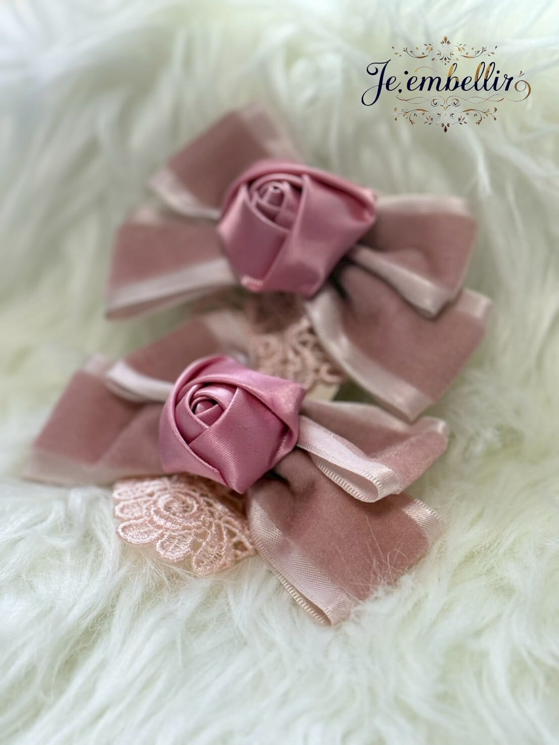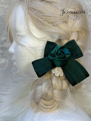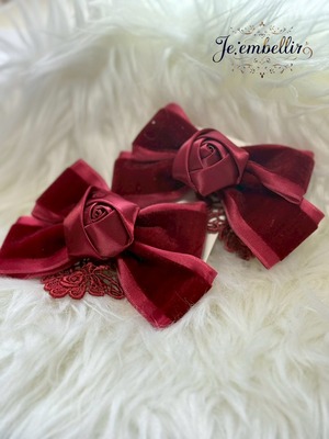 優雅なベロアサテンの素材を使用した、華やかなリボンクリップです。