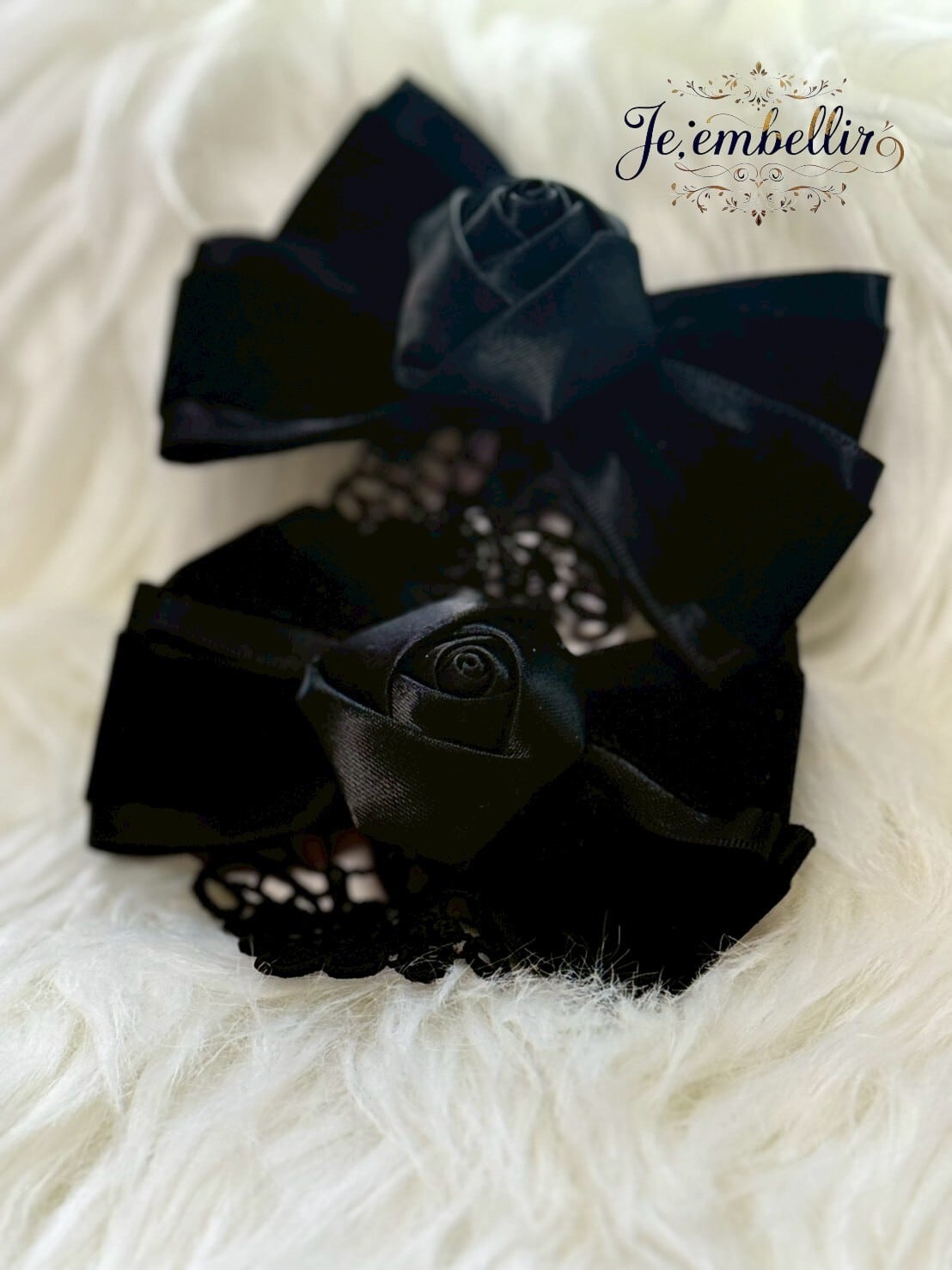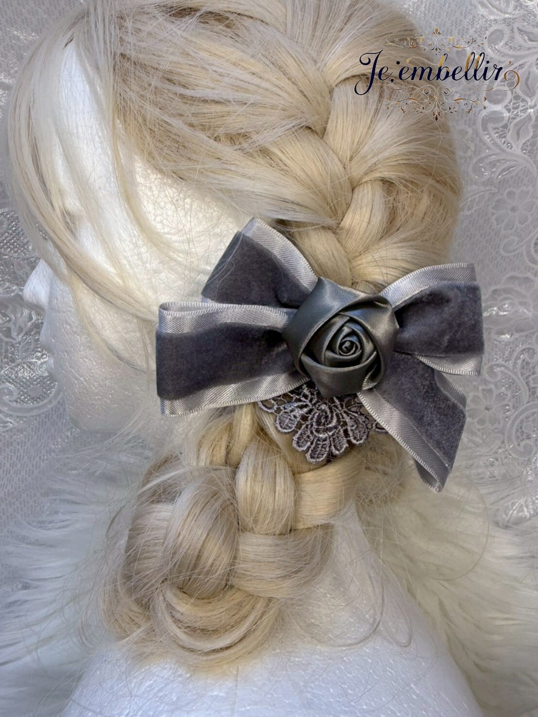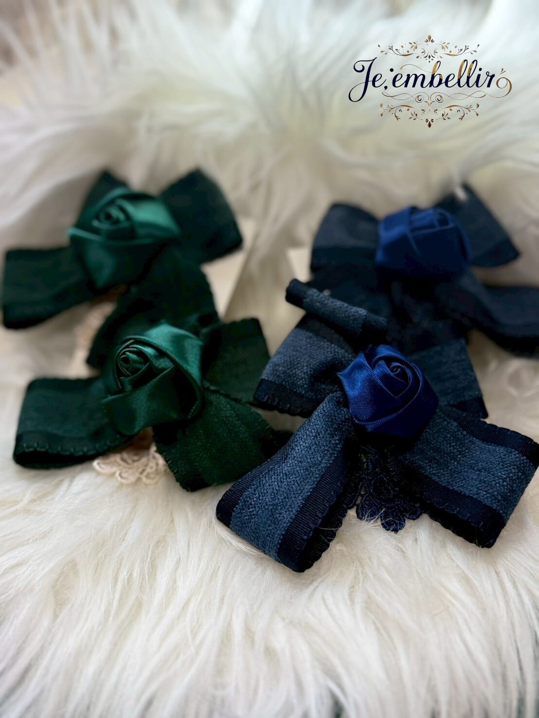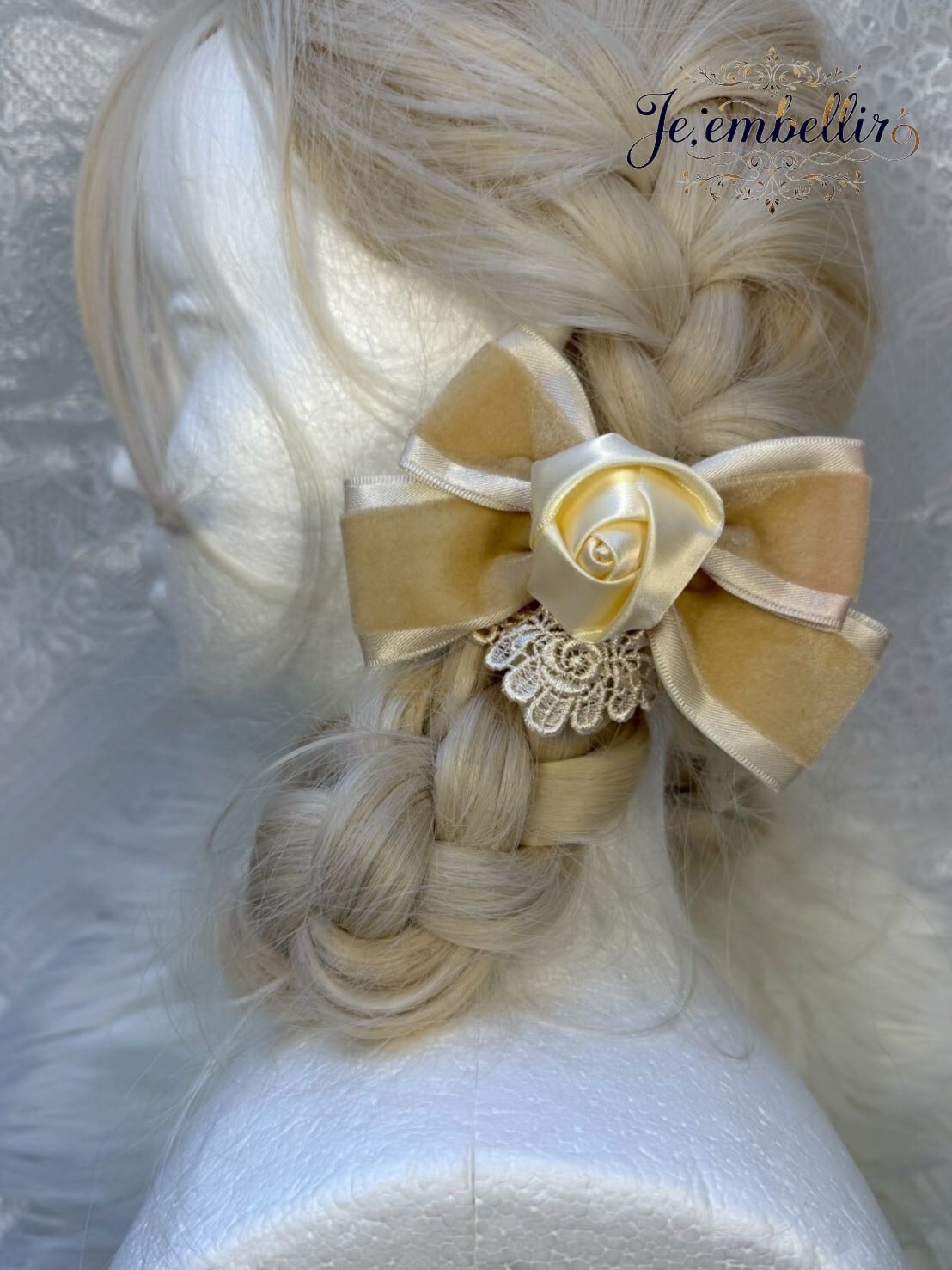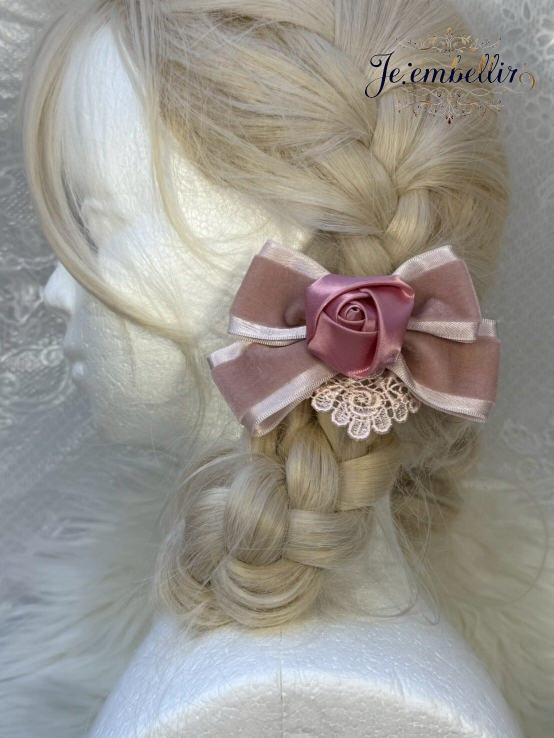 優雅なベロアサテンの素材を使用した、華やかなリボンクリップです。