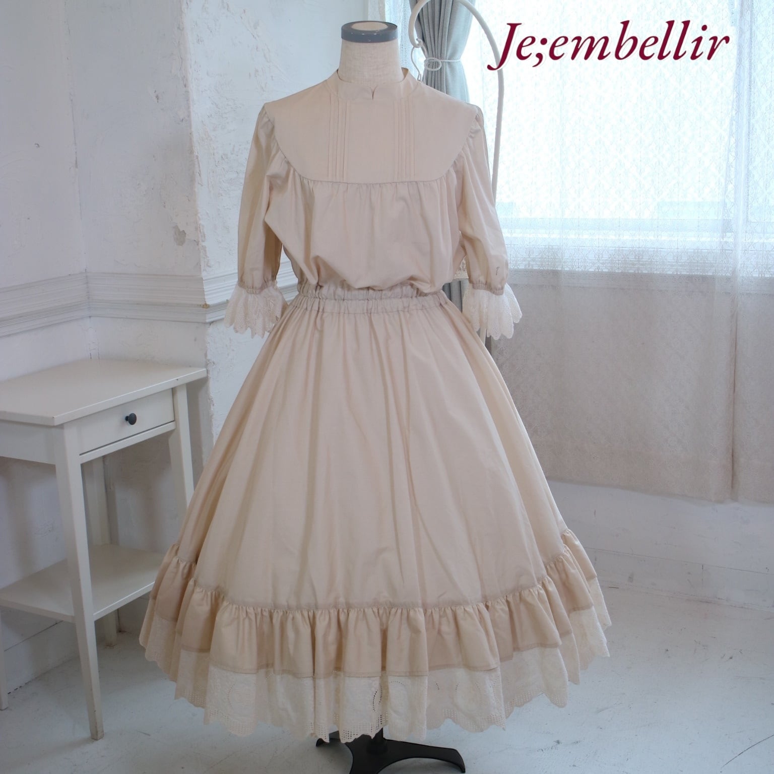 裾のレースは綿100%の刺繍レースを使用しております。
